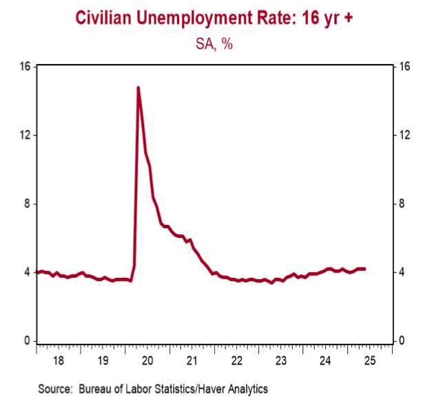 The unemployment rate held steady at 4.2%, but that’s not the good news it might seem. The civilian employment count dropped by a massive 696,000, while the labor force shrank by 625,000. That kind of contraction helps keep the jobless rate unchanged, but it reflects a declining number of people actively working or looking for work.